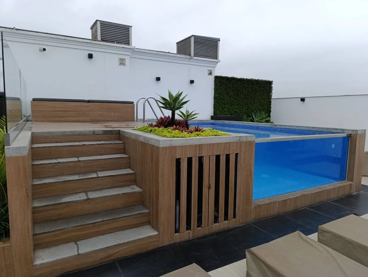 Áreas comunes: Lobby con vigilancia, terraza con zona de parrilla, bar, piscina, lavandería y bicicletero