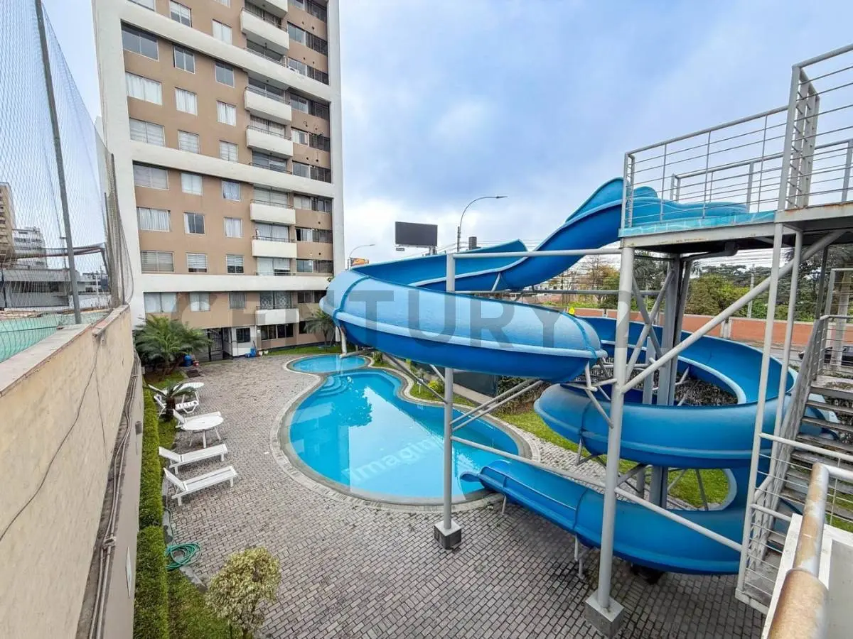 Áreas comunes: piscina, gimnasio, juegos infantiles, jardines y salón de usos múltiples.