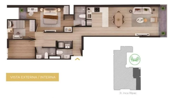 Moderno departamento ubicado en Jr. Inca Ripac, cuadra 3, con entrega inmediata, dentro de un edificio de 11 pisos y 75 departamentos, diseñado para ofrecer confort y funcionalidad.