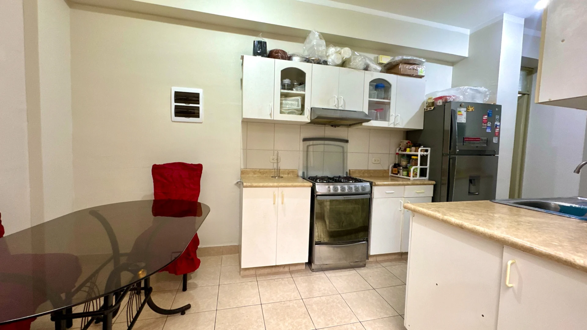 • Cocina cerrada con reposteros altos y bajos, además de un cómodo comedor de diario.