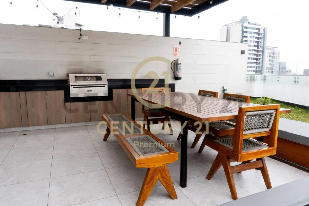 Áreas comunes: lobby, coworking, SUM, patio central, parrillas en rooftop y bike parking.