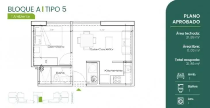• Área total: 31,89 m²