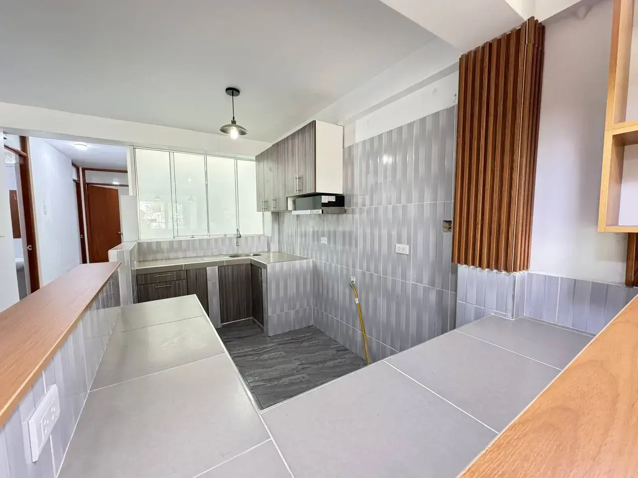 ✅️ Cocina estilo americano, amoblada con reposteros altos y bajos.