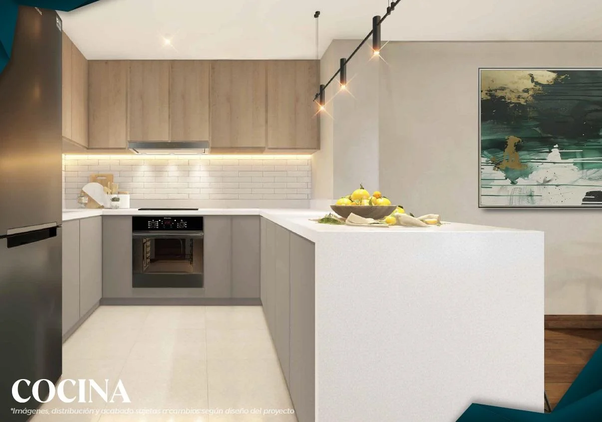 Esta unidad ubicada en el primer piso ofrece una excelente distribución. Al ingresar, se encuentra un recibo acogedor que da paso a una amplia sala y comedor con buena iluminación natural. La cocina es abierta, con diseño moderno y equipada con muebles altos y bajos, lo que la hace funcional y práctica para el día a día.