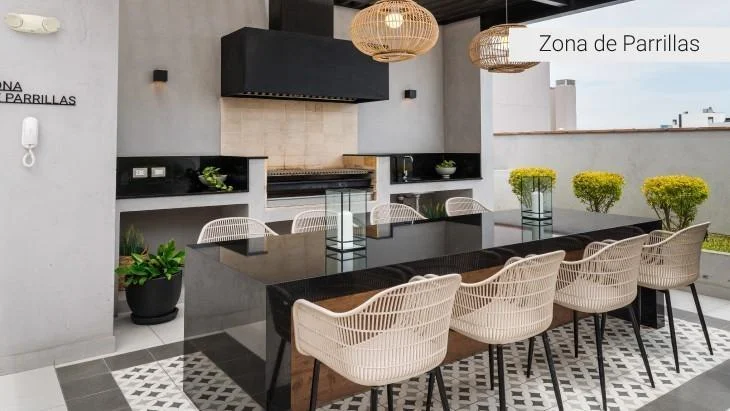 Terraza con zona de parrillas (BBQ): Perfecta para reuniones al aire libre.