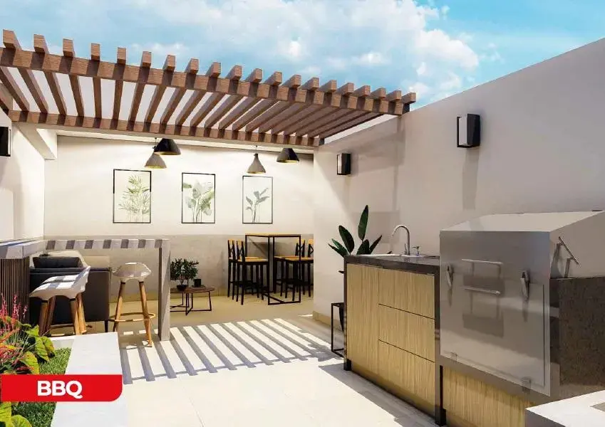 Entre las áreas comunes se incluyen espacios pensados para el confort y disfrute de sus residentes: un amplio lobby de ingreso, zona de parqueo para bicicletas, una sala de usos múltiples ideal para reuniones o eventos sociales, y una atractiva terraza equipada con área de parrilla, perfecta para compartir con familia o amigos.