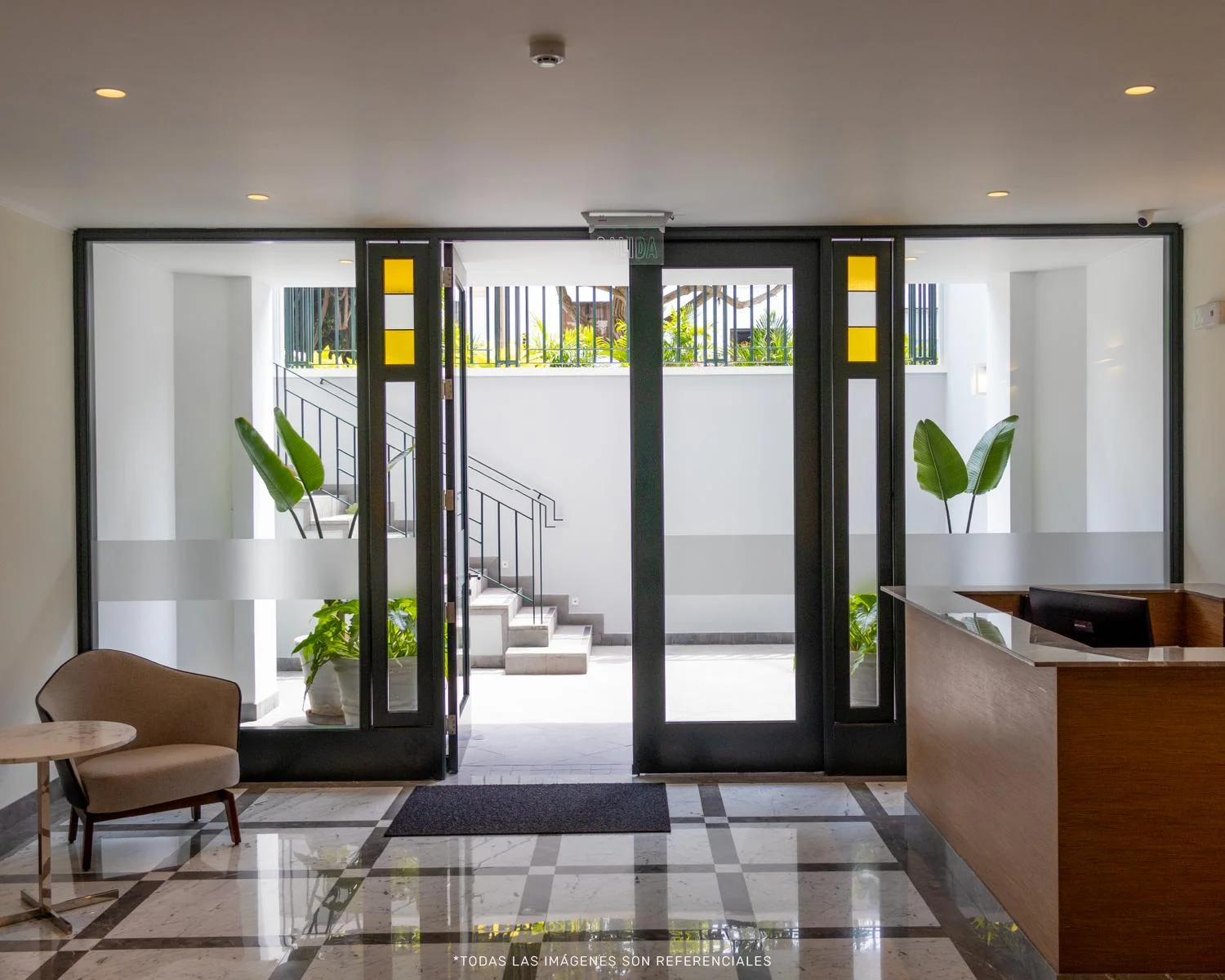 Ingreso con ascensor directo a un recibo acogedor.