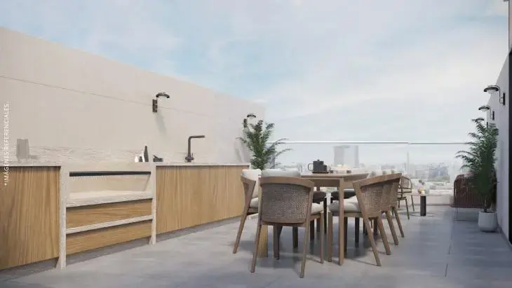 Las zonas compartidas han sido concebidas con un enfoque contemporáneo y versátil: un elegante lobby de ingreso, dos terrazas —una con zona de parrilla (BBQ) y otra con mirador—, un agradable living verde que aporta frescura al entorno, una zona gourmet ideal para cenas o eventos, gimnasio completamente equipado, pet zone para quienes viven con mascotas, y una acogedora sala bar para compartir con amigos o familia.