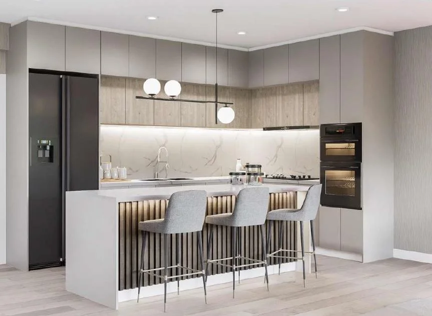 Los departamentos destacan por su altura de 2.7 metros de piso a techo, lo que proporciona mayor sensación de amplitud e iluminación natural. Los acabados han sido cuidadosamente seleccionados para ofrecer durabilidad y estilo, incluyendo pisos SPC tipo madera y tableros de cuarzo blanco estelar en cocinas y áreas comunes, brindando un diseño moderno y elegante.