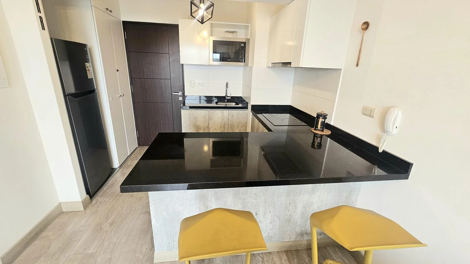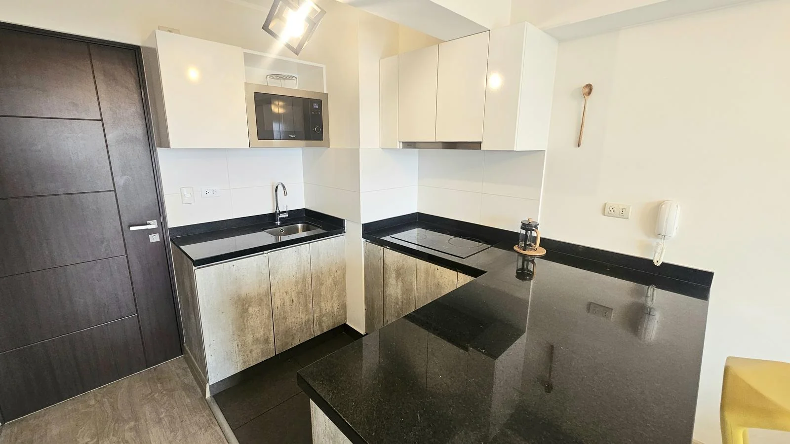 Cocina americana con tablero de cuarzo negro