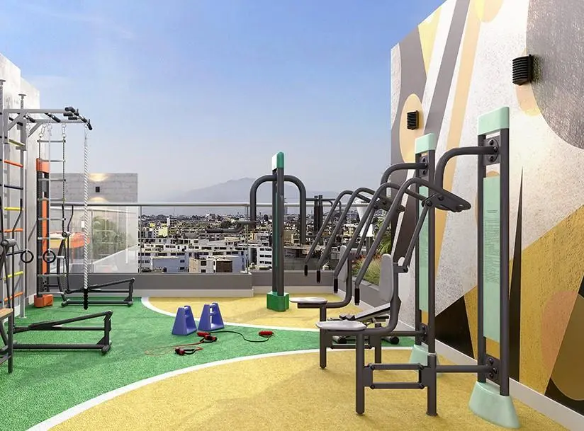 El edificio cuenta con diversas áreas de uso compartido, diseñadas para brindar bienestar y entretenimiento a sus residentes. Entre los espacios disponibles se encuentran un elegante lobby de ingreso, salón de usos múltiples, piscina, karaoke, gimnasio completamente equipado, zona de videojuegos, amplia terraza con parrilla y un patio interior. Además, dispone de ascensores modernos y guardianía permanente para garantizar seguridad y tranquilidad en todo momento.