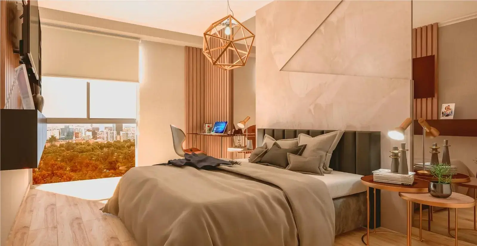 El departamento cuenta con tres dormitorios bien distribuidos. El dormitorio principal ofrece un espacio ideal para el descanso, y los dos dormitorios secundarios pueden adaptarse como habitaciones adicionales, espacios de trabajo o incluso como salas de estudio o lectura.