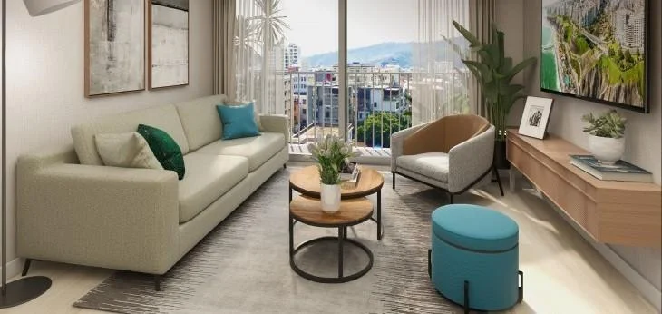 Áreas comunes: Lobby, coworking, SUM, parque interno.