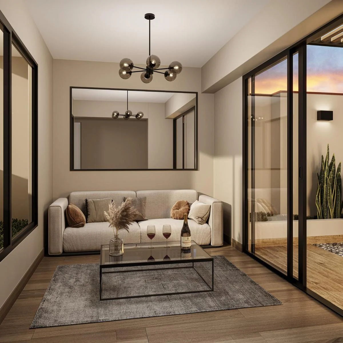 Este acogedor departamento ha sido diseñado para brindar funcionalidad y comodidad en cada uno de sus espacios. Al ingresar, se encuentra una luminosa área social que integra de manera armoniosa la sala y el comedor, creando un ambiente ideal tanto para el descanso diario como para recibir visitas en un entorno cálido y moderno. La disposición de este espacio permite una circulación fluida, y gracias a su distribución abierta, se aprovecha al máximo la luz natural durante el día.