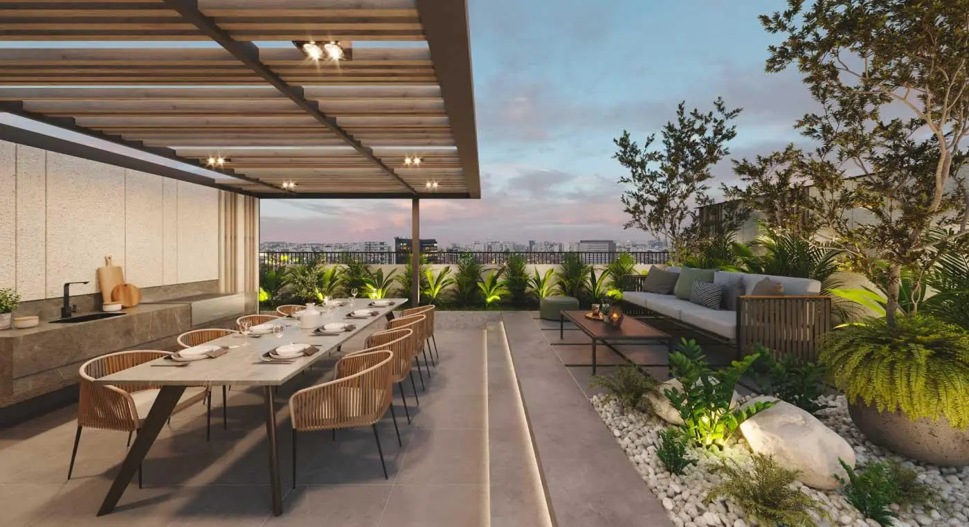 Áreas comunes: Lobby, Sala de Niños, Zona de parrillas, Plaza Interna.