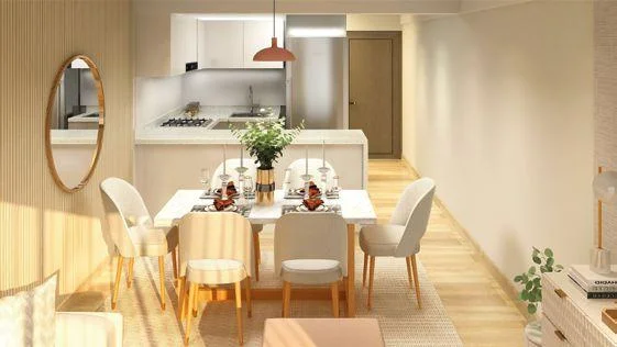 Zona social: Sala-comedor con buena iluminación natural y salida a un balcón funcional, perfecta para disfrutar del aire libre.