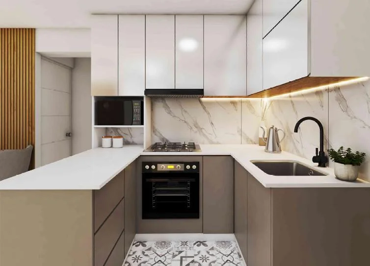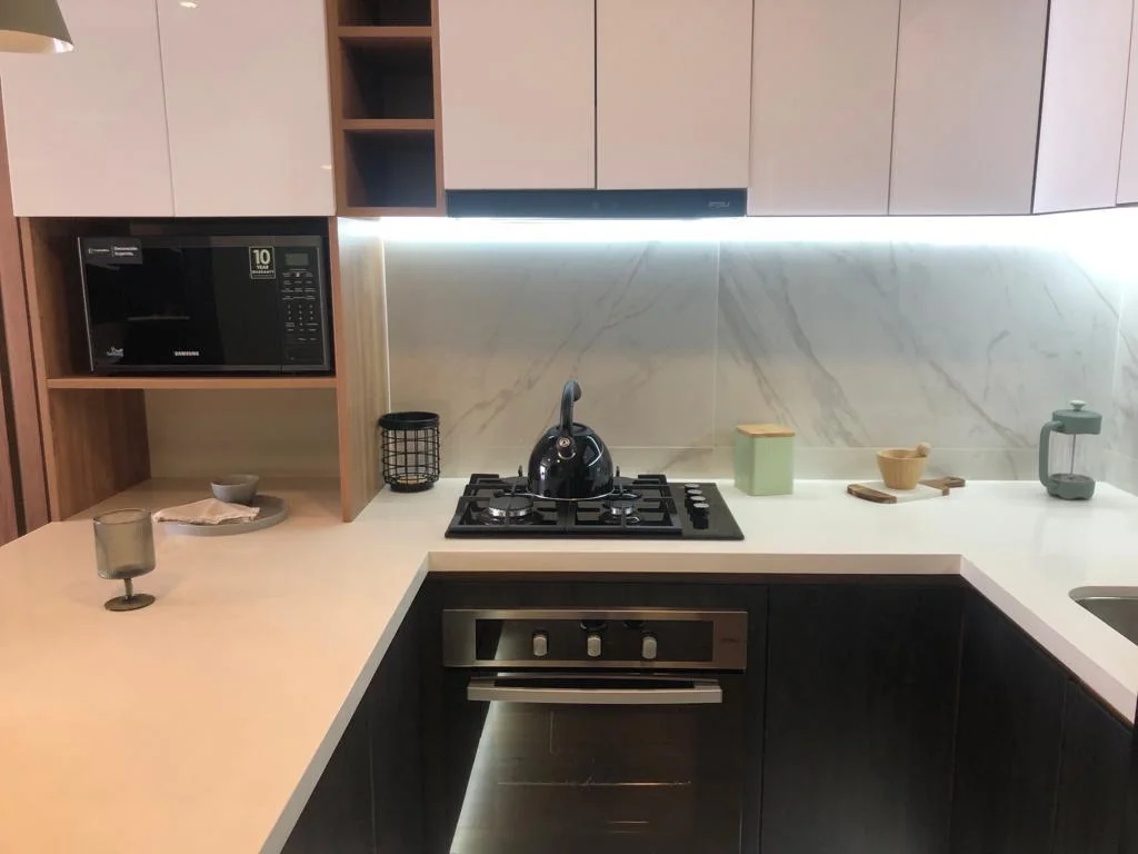 • Muebles de cocina en melamina, con acabado tipo gloss.