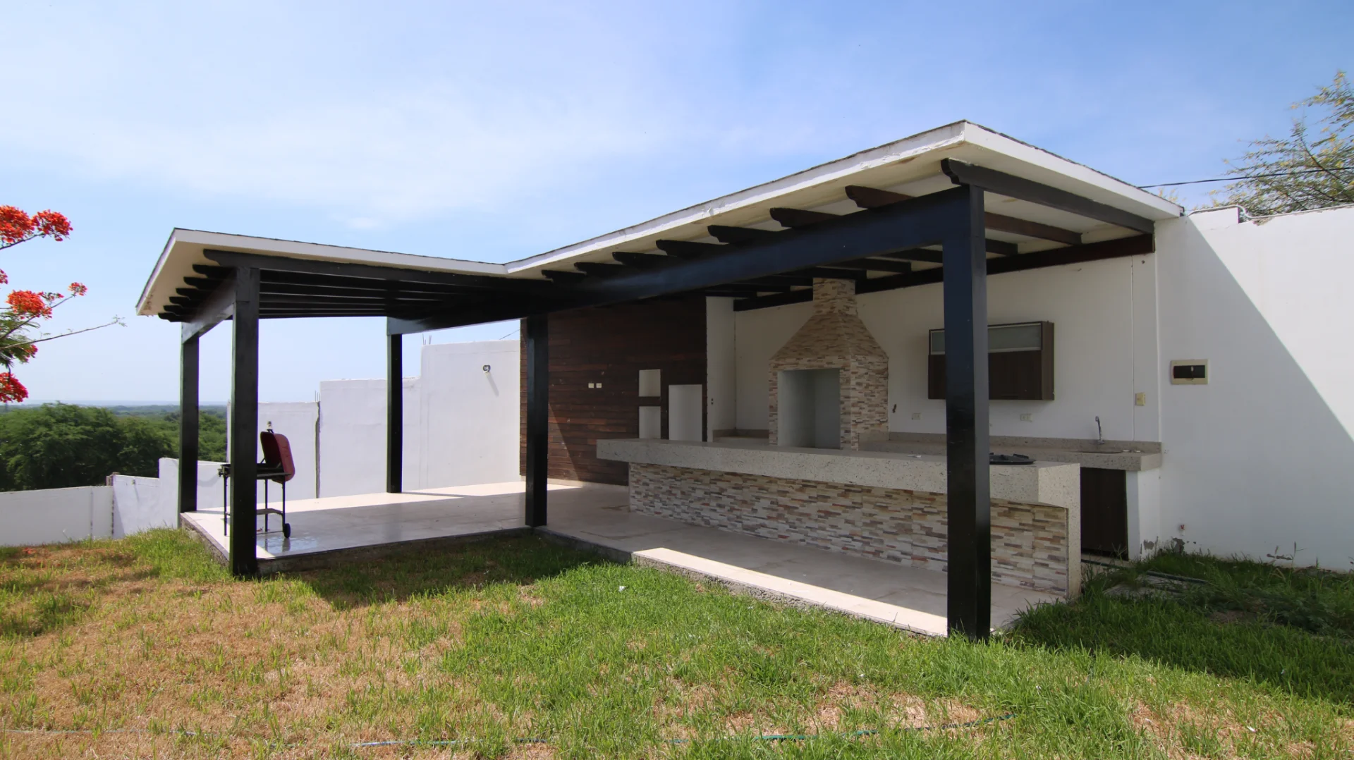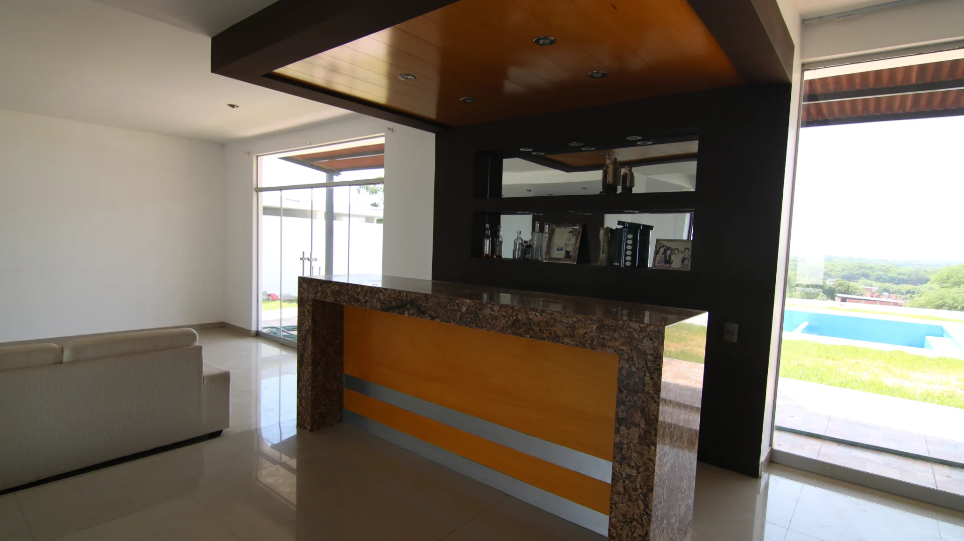La casa tiene piso y techo con acabados en fina madera. Además, cuenta con un sistema de iluminación moderno y elegante.