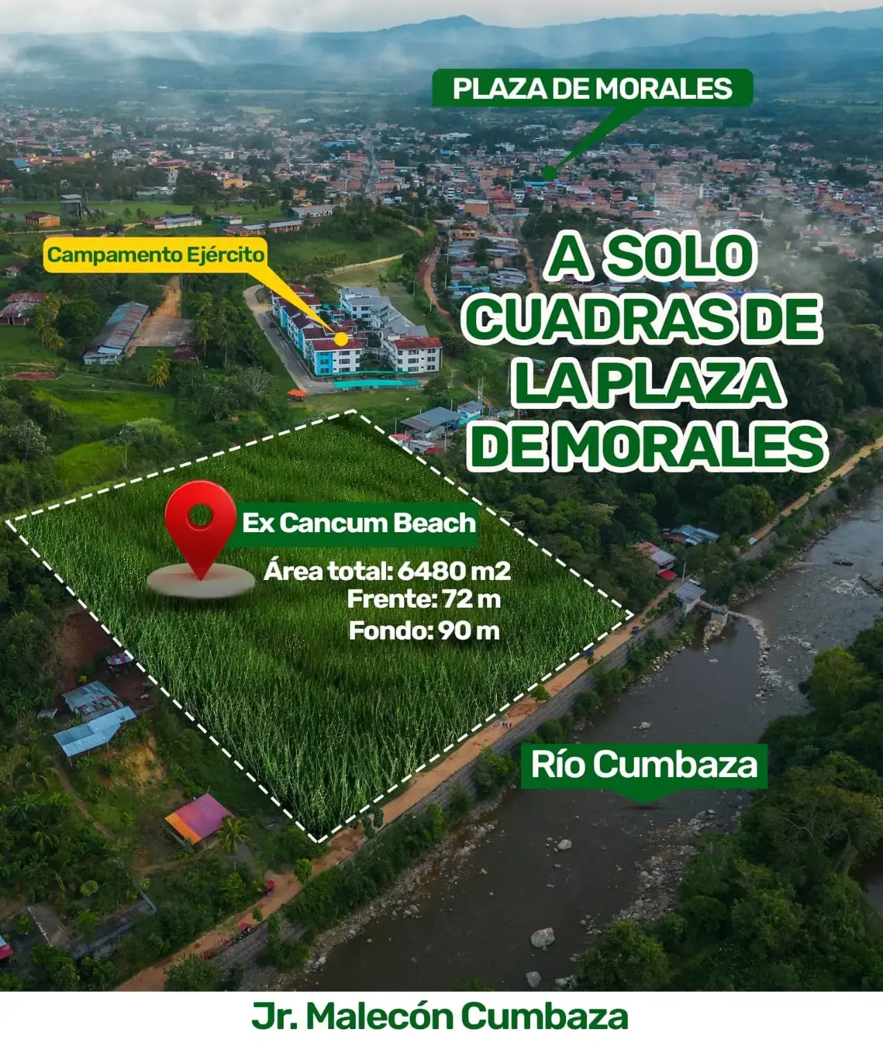 6480 M2 (72 METROS DE FRENTE Y 90 METROS DE FONDO) A ORILLAS DEL RÍO CUMBAZA