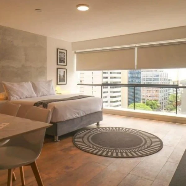DEPARTAMENTO PREMIUM AMOBLADO Y EQUIPADO EN EL CORAZON DE SAN ISIDRO DEPARTAMENTO El departamento tiene m integrado sala comedor cocina abierta una habitacin con camas Queen y bao rea del departamento m Dormitorios principal con closet bao completo cama Queen totalmente equipados Sala comedor bien iluminado Bao de visita Cocina abierta horno campana comedor refrigerador entre otros artefactos rea de lavandera Vista Externa Piso NO CUENTA CON ESTACIONAMIENTO Se puede alquilar en el edificio Se acepta mascotas EDIFICIO Edificio moderno Seguridad horas Edificio de pisos residencial Lobby elegante Gimnasio rea de mascotas Ubicacin Ubicado en av Camino Real Urbanizacion Miguel Dasso Cerca de restaurantes supermercados bancos entre otros Precio Alquiler US dlares Condiciones de arrendamiento Contrato mnimo ao de garanta y de adelanto x