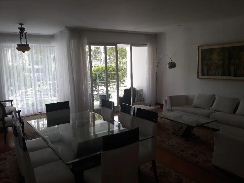 Lindo departamento con amplia terraza de 80m2 aprox. y balcón con vista al parque. cada dormitorio con baño incorporado, sala de estar. 2 cocheras paralelas. edificio arquitecto mario lara, frente a parque dammert. 4 pisos, con o sin muebles, 6 años de antiguedad, vista a parque, nuevo, piso 2, 2 departamentos por piso, 7 departamentos en total, guardianía, flat. Hall de ingreso, sala, comedor, comedor de diario, cocina, sala de estar, 3 dormitorios, 3.5 baños, 3 baños incorporados, 1 cuarto de servicio, 1 baño de servicio, lavandería, pisos de madera en área social, pisos de madera en área privada. Terraza, 2 cocheras tipo paralelas techadas, 1 ascensor, ascensor directo. Aire acondicionado, no mascotas, walk-in closet, parrilla, disponible desde el ****. Parque Dammert