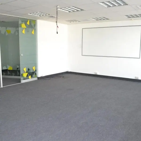 Nuestra oficina de m se encuentra frente al Ministerio de Interior de la Produccin y de Exterior y Turismo Esta oficina se encuentra implementada con mamparas de vidrio y ambiente de trabajo tipo open space La oficina cuenta con Cielo raso Luminarias Piso alfombrado rea para kitchenette baos Estacionamiento doble