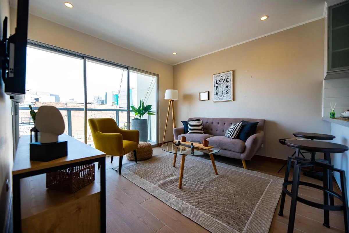 Edificio moderno con sistema de ahorro para luz y agua. Tiene lobby con lounge de espera, guardiania, ascensor, areas comunes, estacionamiento de visitas y de bicicletas.