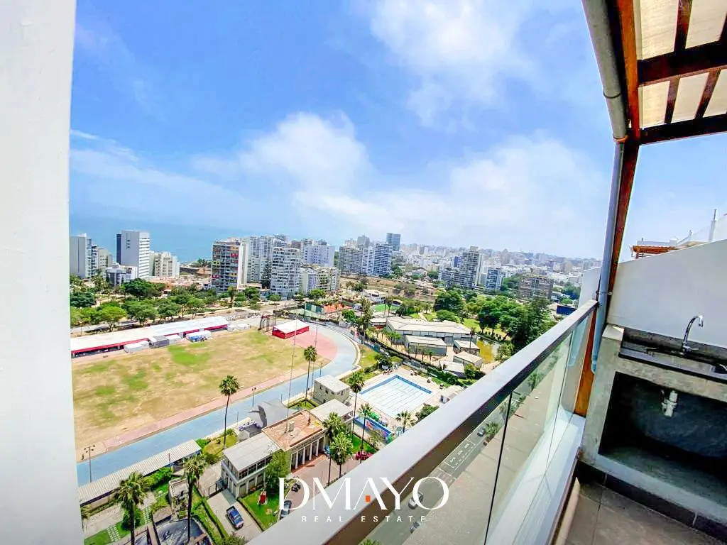 Alquiler de moderno departamento dúplex completamente amoblado y equipado, ubicado en Av. Almirante Grau, frente al MAC y a un paso de Armendáriz, en el límite entre Barranco y Miraflores. Se encuentra en el piso 21 y cuenta con una vista espectacular al mar y al Chipoco.
