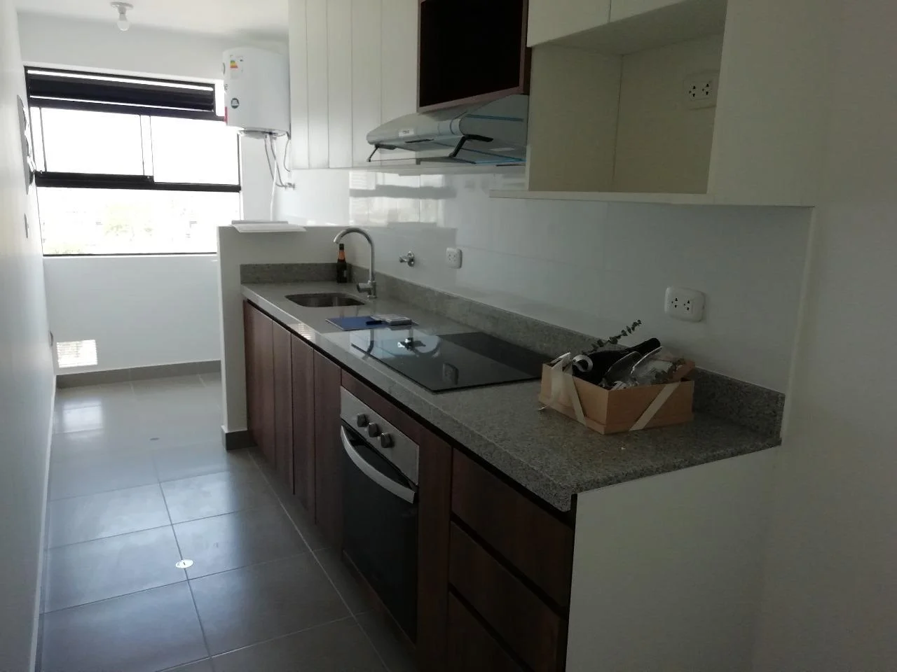 * Cocina equipada con horno, encimera, campana extractora y muebles superiores e inferiores