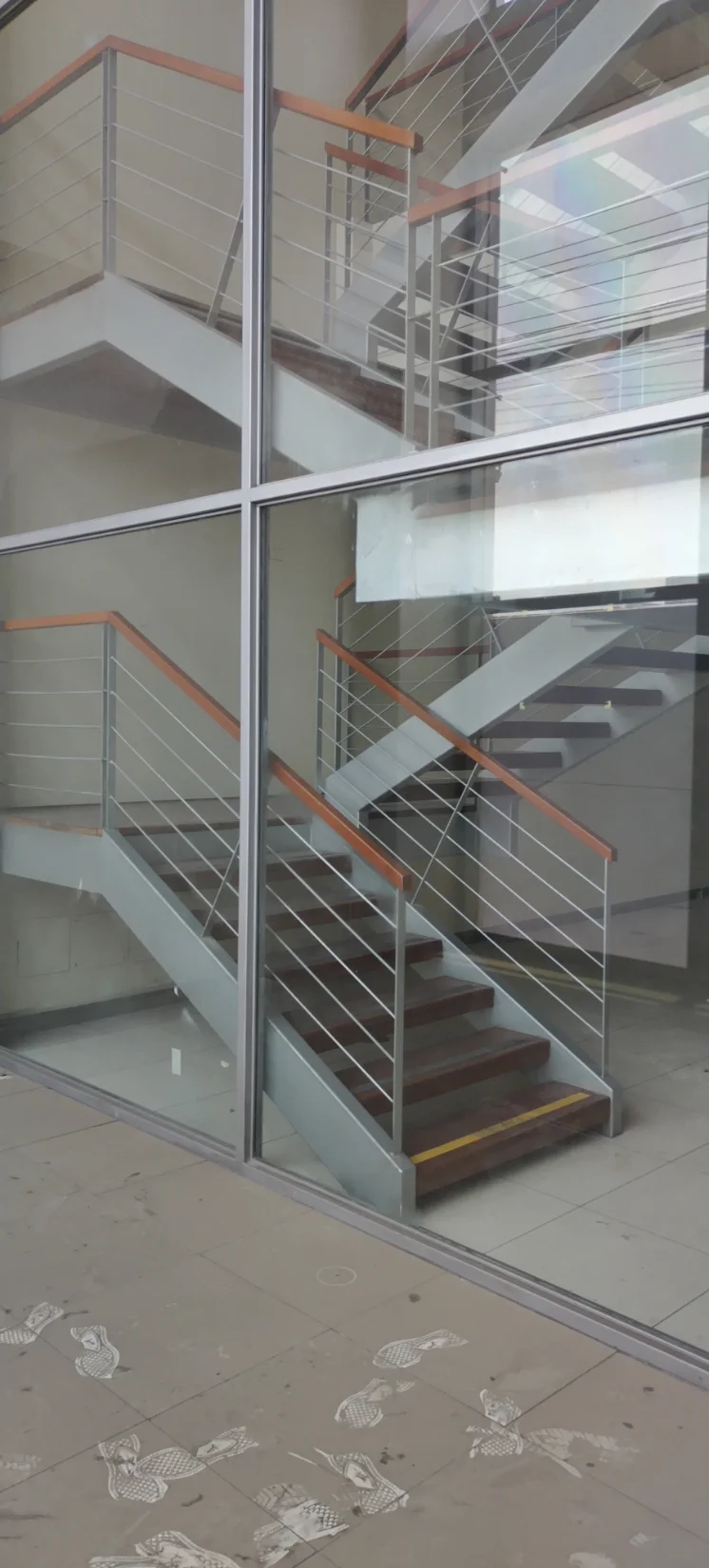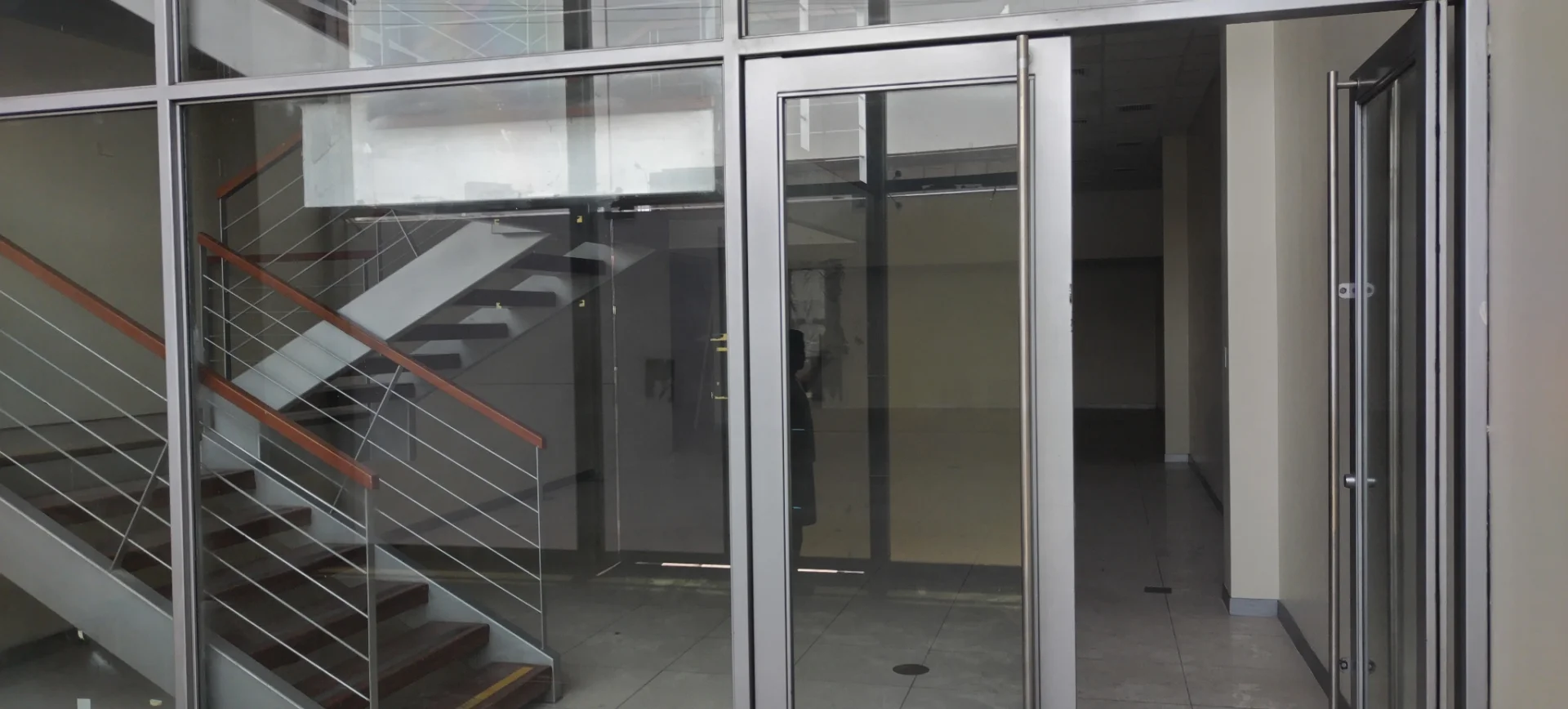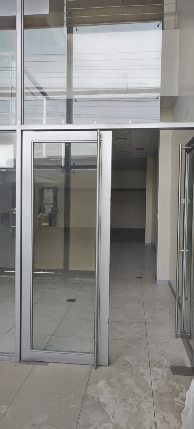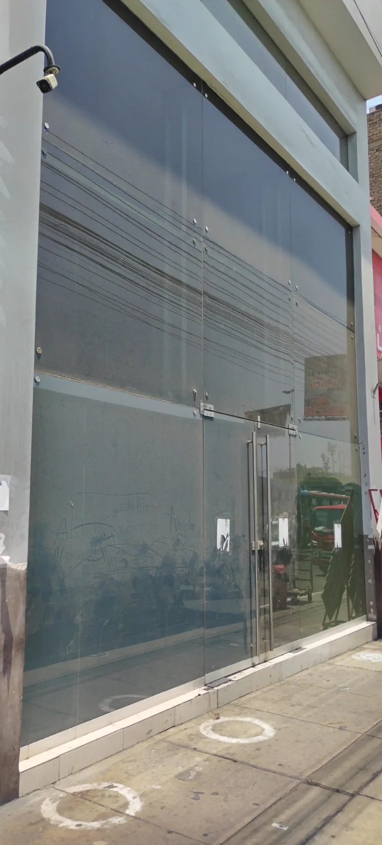 Distribucion: Area: 208.50m2, puertas de vidrio muy seguras con buenos acabados , pisos de mayólicas, escaleras de aluminio y madera, también tiene dos espacios que podrían ser área de oficinas, cajas, almacen o bóvedas, cisterna de agua