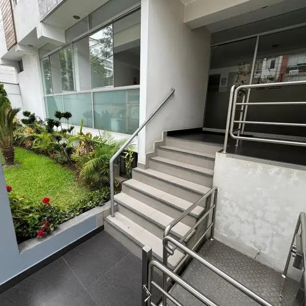 Vendemos ste sper luminoso cmodo y bien distribuido departamento en una muy bien ubicada avenida en Miraflores El departamento cuenta con dormitorios un cuarto de servicio convertido en estudio baos completos bao de servicio sala comedor y cocina abierto tipo americana El edificio tiene pisos el departamento en venta est en el piso son dos departamentos por piso y el edificio tiene ascensor El precio de venta incluye un amplio estacionamiento techado Departamento ideal para familias que buscan inmuebles con varias habitaciones Ubicado en una zona segura y cntrica con rpida salida a las avenidas Pardo Santa Cruz y Comandante Espinar Si tiene alguna duda o desea agendar una visita comunquese con el nmero de contacto Daniel Lpez Gutirrez