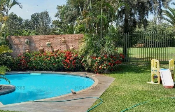 Linda y funcional casa en una ubicacin excelente frente calle fondo al Golf de una sola planta todos los ambientes principales tienen vista al jardn y a la piscina son dormitorios baos dos incorporados y uno que comparten bao de visita cocina amplia con comedor de diario y una isla las cocheras son paralelas y lo maravillosos que tiene un departamento independiente de dormitorio con todo puede ser para visita oficina tiene tambin oficinas yo talleres muy cmodos depsitos rea de servicio grande tendal y muy buena lavandera sala comedor con chimenea con vista espectacular al golf piscina todo se integra y haces un ambiente muy acogedor