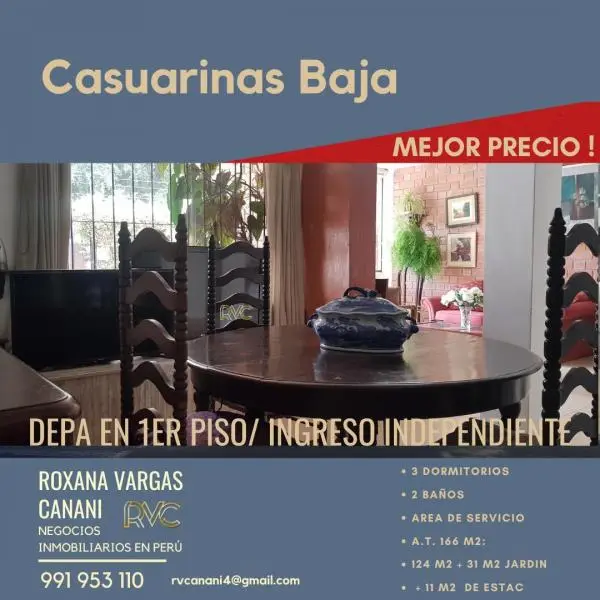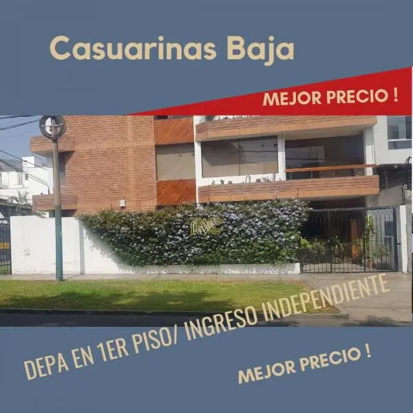 Si tu sueo es vivir en Las Casuarrinas esta es tu oportunidad de comprar un departamento en zona exclusiva y dentro de tu presupuesto Ubicado en la mejor zona de Surco cerca al Colegio Casuarinas Inmaculada y muchos otros colegios de prestigio Con salida posterior a parques privados y cerrados con maxima seguridad para disfrutar y jugar con tus hiijos y mascotas Consta de dormitorios baos cuarto y bao de servicio Cocina cerrada con posibilidad a hacerla abierta estilo americano Mantenimiento barato y precio a tu alcance Vale la pena verlo Saca tu cita al