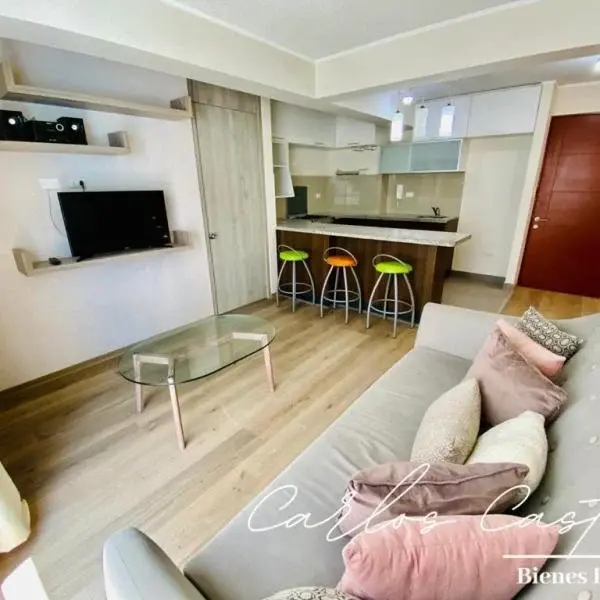 Contigo Inmobiliaria Hermoso dpto en alquiler con una excelente ubicacin cerca a Plaza Vea de El Cortijo a la va expresa al metropolitano en una ubicacin bastante estratgica cerca a Miraflores a uno de los mejores malecones de Lima Paul Harris y cerca a surco Cuenta con una sala comedor super amplia cocina lavandera habitaciones baos TOTALMENTE AMOBLADO Cuenta con GAS NATURAL instalado para la cocina y para la Terma sper mdico Edificio por portera y seguridad hrs ascensor y cmaras reas comunes gimnasio saln de reuniones jardn interno terraza etc Tiene un estacionamiento Contigo Inmobiliaria