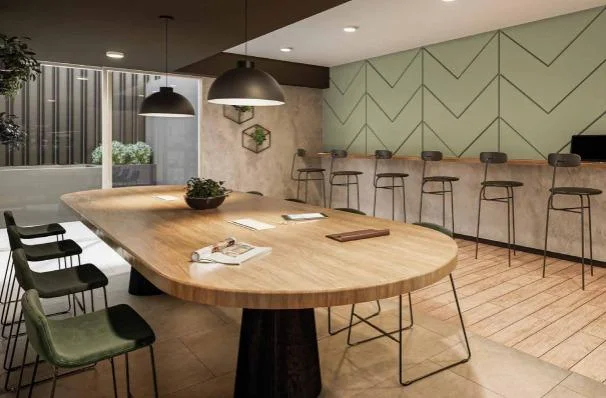 Sala comedor amplia e iluminada