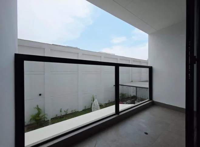 Sala comedor amplia con balcón, mampara de piso a techo, totalmente iluminado