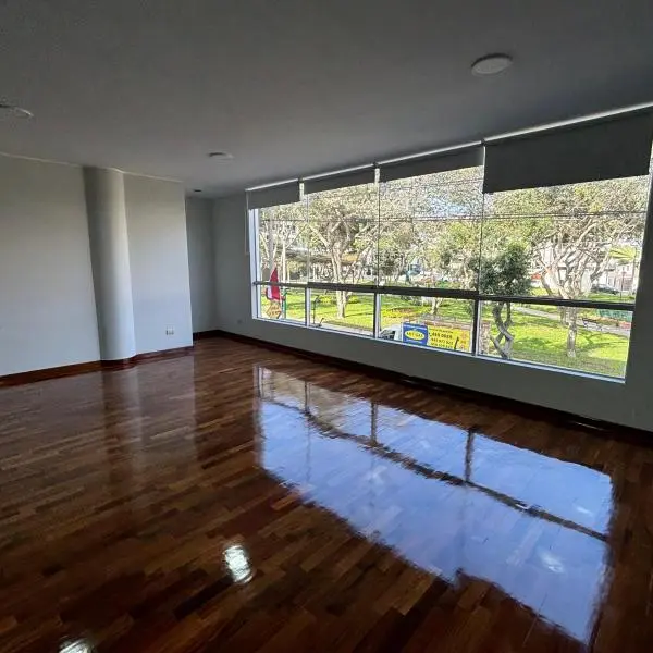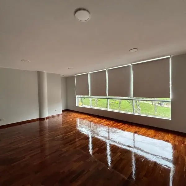 Este elegante y moderno departamento recin remodelado est listo para convertirse en tu nuevo hogar Ubicado frente a un hermoso parque ofrece un ambiente relajado y vistas impresionantes Caractersticas Amplia sala con grandes ventanas y rollers proporcionando mucha luz natural Cocina abierta perfecta para disfrutar mientras cocinas Cuarto de lavandera para mayor comodidad Cuarto y bao de servicio para mayor funcionalidad Cuarto principal con bao privado ofreciendo privacidad y confort Dos cuartos secundarios que comparten un bao completo ideal para familia o visitas cochera para tu vehculo Ascensor y escaleras de emergencia para tu seguridad y comodidad Precio S mensuales Mantenimiento S Contrato ao