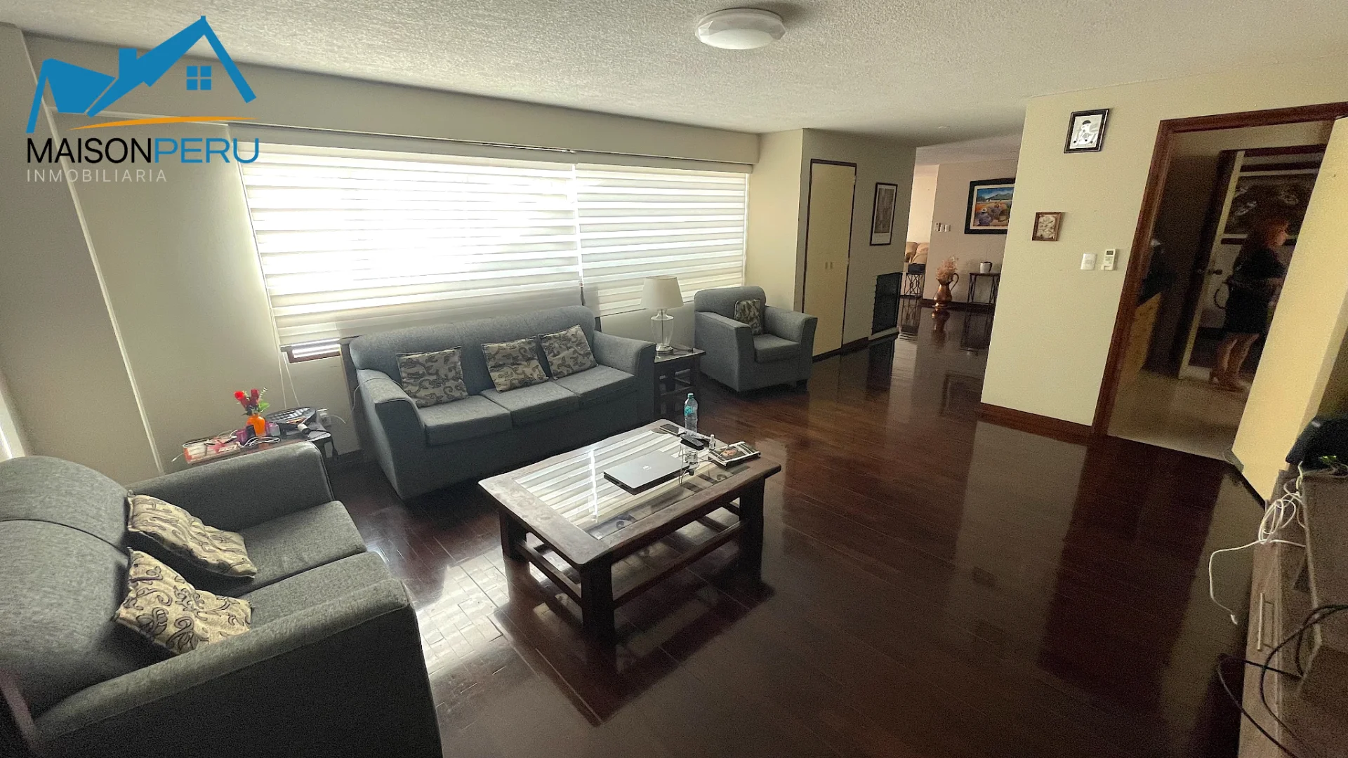 Sala y comedor amplios, sala de estar con TV integrada a la cocina. Cocina con comedor de diario. Baño de visita, baño completo compartido con ducha y closet en pasadizo.