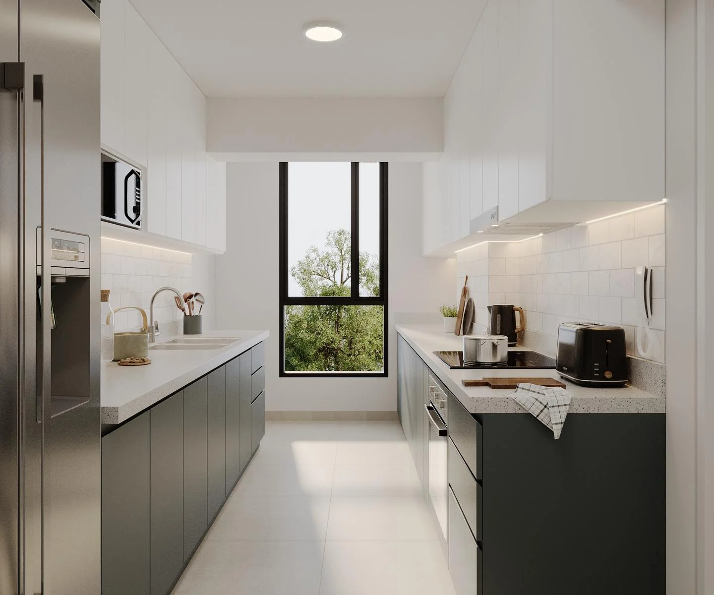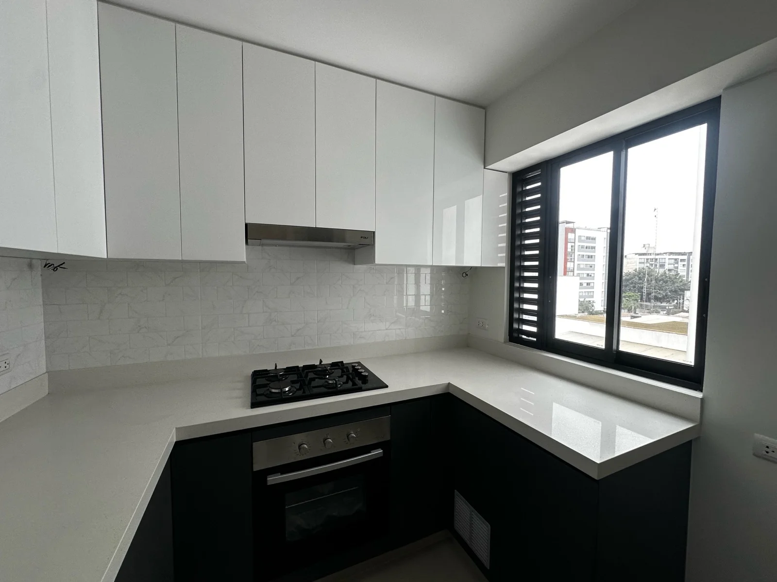 • Cocina abierta con tablero de cuarzo, muebles altos y bajos (Espacio para comedor de diario)