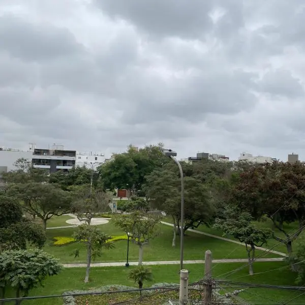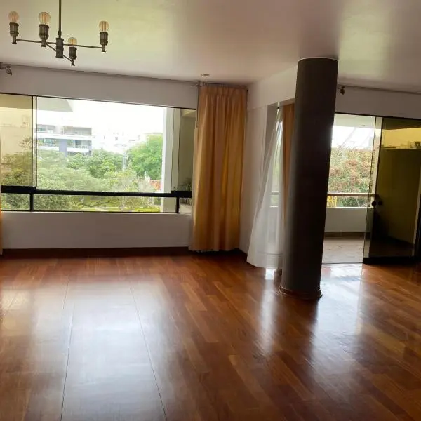 Lindo departamento frente a parque Benjamin Doig en Chacarilla dormitorios principal con walking closet baos sala de estar cocina con lnea blanca y pequea cava balcn vista al parque cuarto y bao de servicio cocheras paralelas depsito ascensor directo edificio pequeo de pisos departamentos por piso se permiten mascotas guardiana