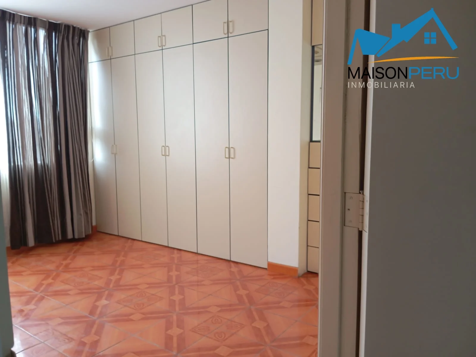 Dormitorio amplio con closet y persianas en ventana