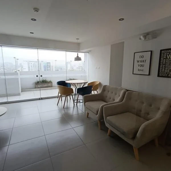 Se alquila departamento en la Av Arenales N Jess MaraLindo departamento en alquiler con vista exterior pisos laminados buena luz natural en el cuarto piso Muy bien ubicado y con las siguientes caractersticas M de rea habitaciones con closets baosSala comedor con balcn Cocina con reposteros altos y bajos cocina y horno empotrados con campana extractora Con conexin a gas naturalLavandera con terma a gas naturalCocheraEl edificio cuenta con diferentes reas comunes comoLobby rea socialSala de CoworkingTerraza Grill cuatro diferentes reas de parrillas para disfrutar con tranquilidad Condiciones de AlquilerCosto S soles mensuales Mantenimiento S soles aprox Modalidad mes de adelanto y de garantaRequisitos Documentos que sustenten ingresos y estar bien en InfocorpContrato anual