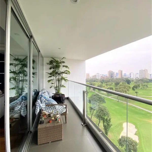 Hall sala comedor comedor de diario cocina cerrada lavandera estar familiar dormitorios walkin closet baos baos incorporados cuarto de servicio bao de servicio cocheras tipo techada depsitos pisos de madera en rea privada pisos de madera en rea social ascensor directo ascensor de servicio terraza de m piscina reas comunes gimnasio comn rea sauna comn Piso Aire acondicionado se permiten mascotas flat aos de antigedad vista al golf LINDO DEPARTAMENTO CON VISTA AL GOLF BUENA DISTRIBUCIN FINOS ACABADOS AMBIENTES AMPLIOS COCINA CON ISLA DORMITORIO PRINCIPAL CON WK TODOS LOS PISOS DE MADERA EDIFICO CON REAS COMUNES PISCINA TEMPERADA GIMNASIO SALA DE USOS MLTIPLES REA DE JUEGOS PARA NIOS SAUNA DE HOMBRE Y MUJER CITAS FCILES