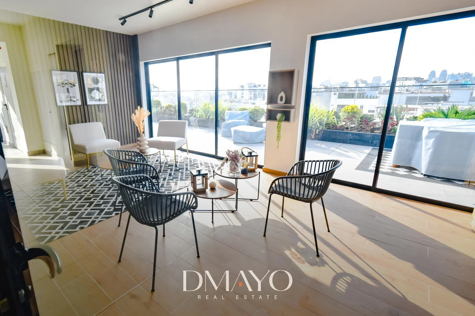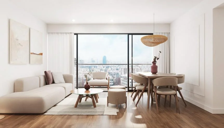 Departamento de 3 dormitorios, sala y dormitorio principal con terraza.