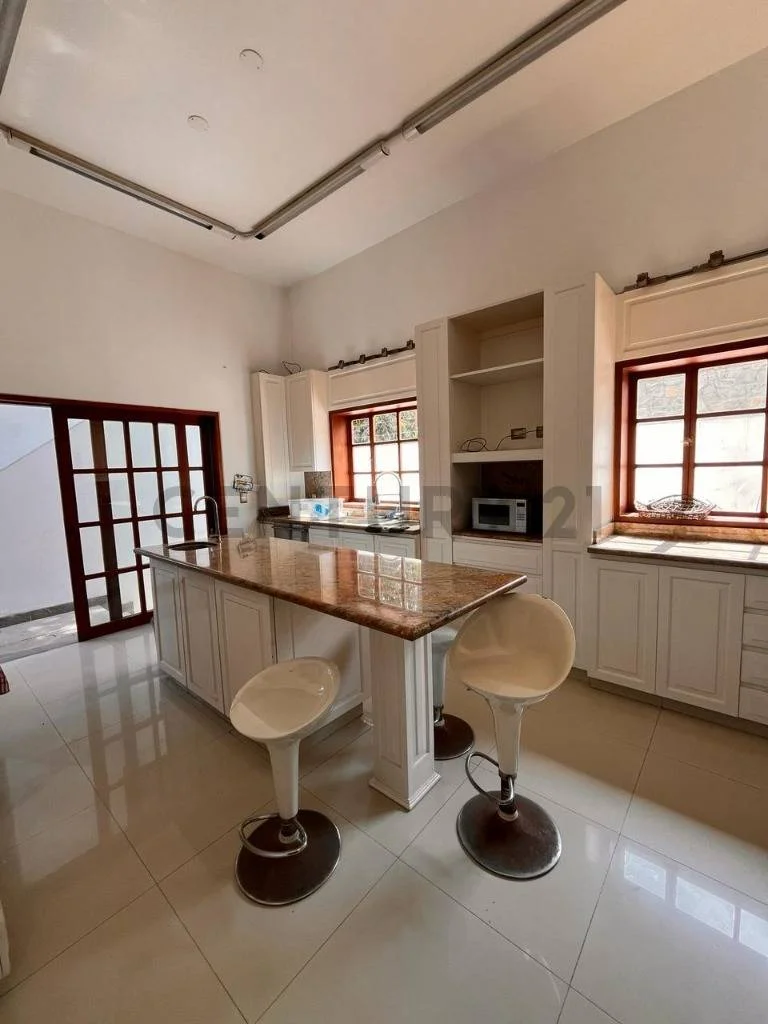 Lavandería, tendal, cuarto de máquinas y tres estacionamientos paralelos. Jardín con 2 terrazas, una con sol y sombra y otra junto a la parrilla, piscina, vigilancia, jacuzzi, jardín, parrilla, comedor diario, escritorio