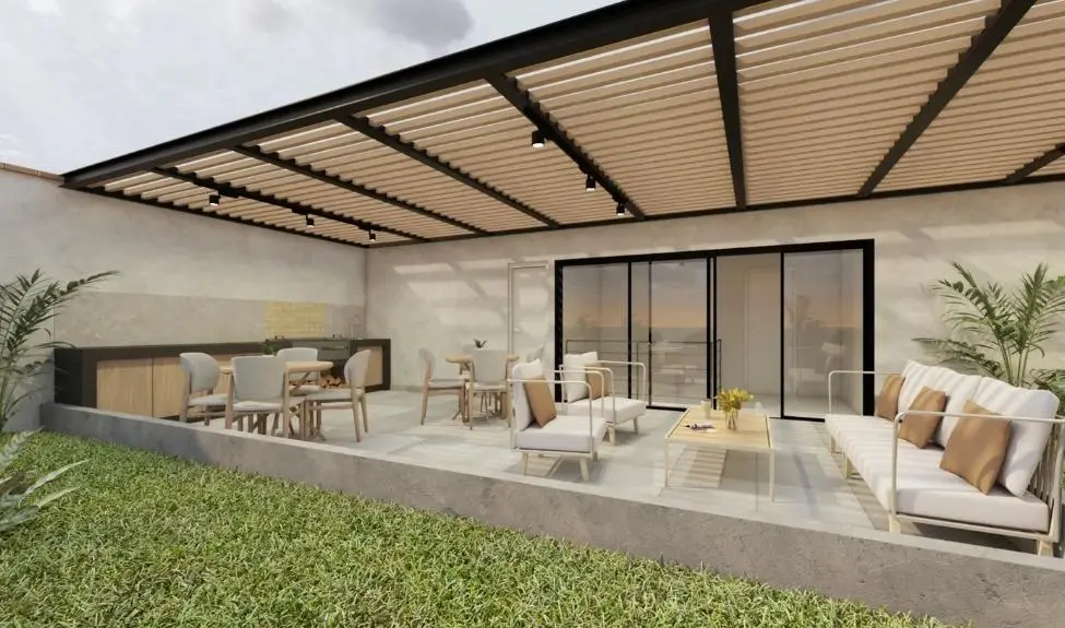 El área privada cuenta con un dormitorio principal cómodo y bien iluminado, además de un dormitorio secundario ideal para familia o visitas. También dispone de un estudio independiente, perfecto para home office, sala de estudio o incluso como dormitorio adicional.