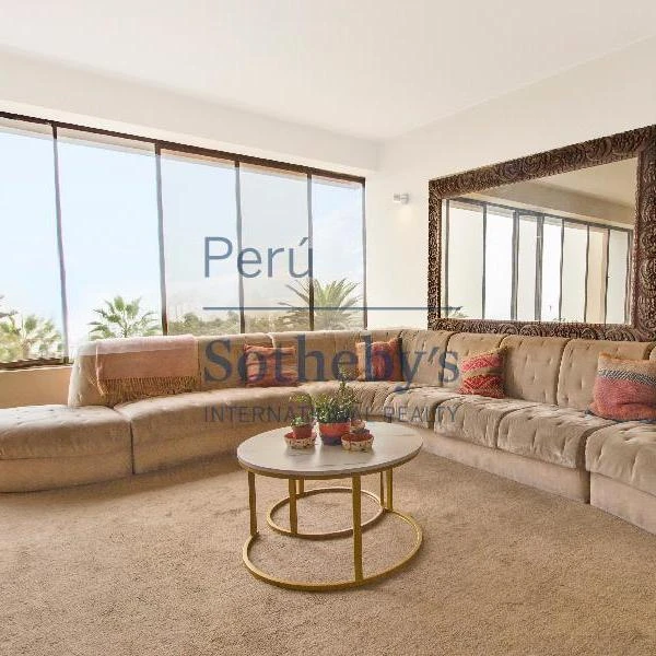 Hermoso departamento flat amoblado ubicado cerca al Puente Villena Balta Shopping y Club Terrazas Al ingresar al departamento nos encontramos con la sala comedor con una linda vista a la calle y parcialmente al mar una sala de estar Cuatro dormitorios tres de ellos con bao incorporado y closets Bao de visita El departamento ha sido remodelado hace aos pisos laminados en los dormitorios y corredor sala y comedor con alfombra entrada con piso de mrmol cocina lavandera y rea de servicio con porcelanato Cocina con lnea blanca y muebles altos y bajos rea de servicio completa y lavandera Cuenta con dos estacionamientos lineales