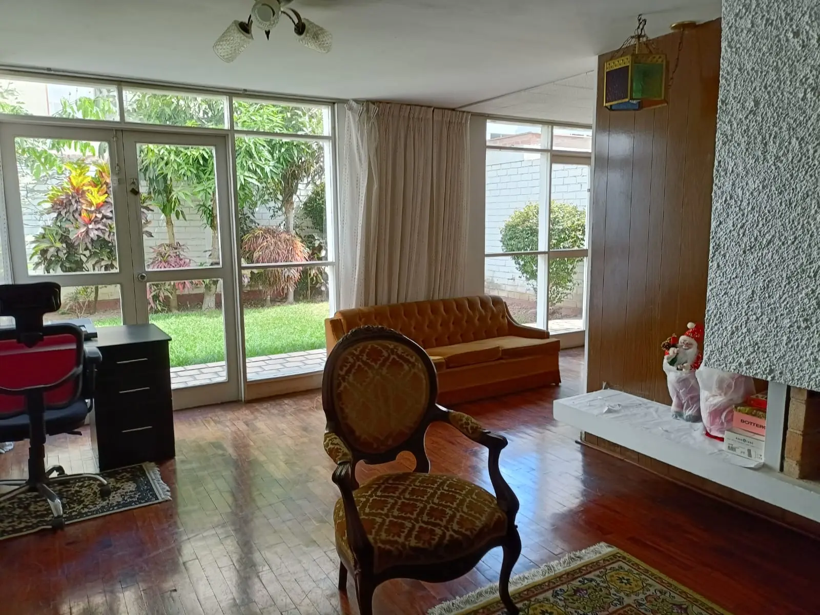 AL INGRESAR SE PUEDE APRECIAR UNA AMPLIA COCHERA Y A CONTINUACION UN ACOGEDOR RECIBIDOR O SALA DE ESTAR, MEDIO DE BAÑO DE VISITAS AREA DE ESTUDIO, LA SALA CON MUEBLE EMPOTRADO Y CHIMENEA, EL COMEDOR POR SEPARADO DONDE ESTOS 2 ULTIMOS TIENEN ACCESO A UN AMPLIO JARDIN QUE LES BRINDA MUCHA FRESCURA Y LUMINOSIDAD.