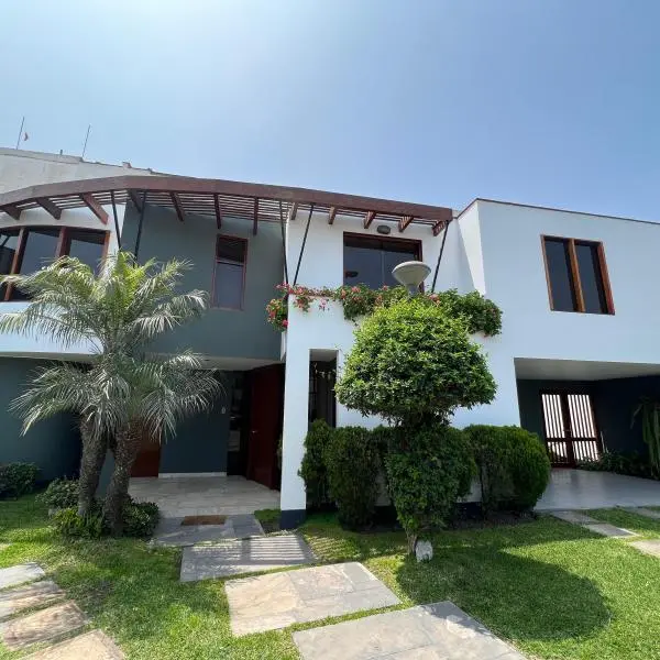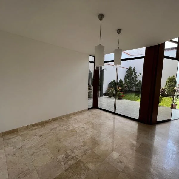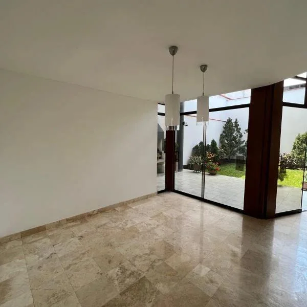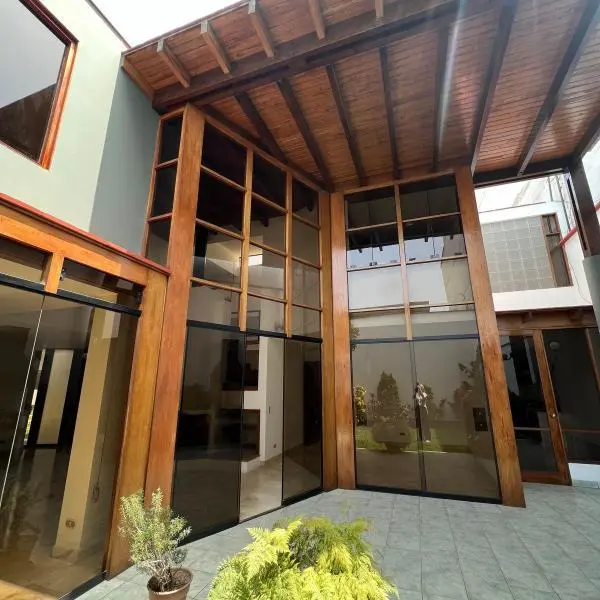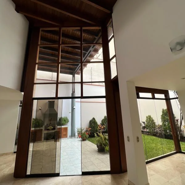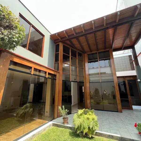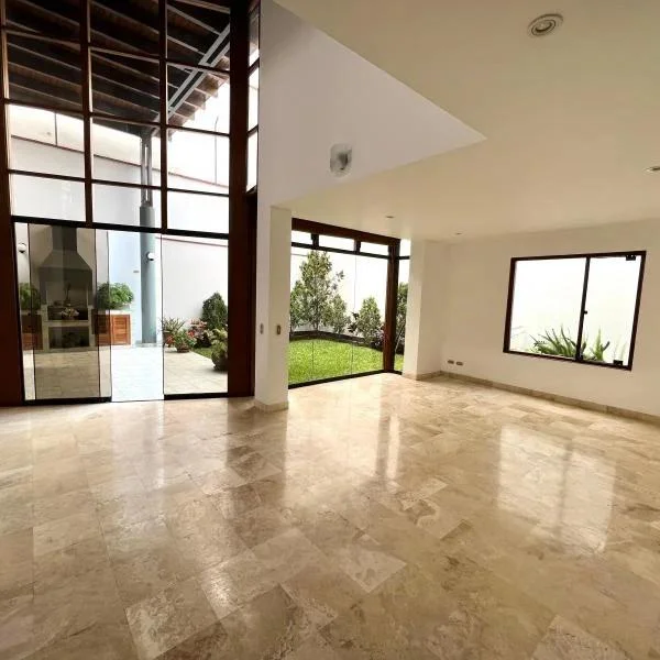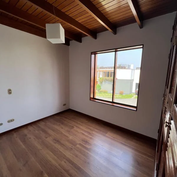 Linda casa en alquiler en condominio de 9 casas, casa de dos pisos, techos altos y doble altura. Ubicada en zona residencial en Surco, cerca de la Universidad de Lima, Jockey Plaza, restaurantes entre otros. Área 438mt2 Área construida 233mt2 Primer piso •Sala comedor con vista a la terraza •Jardín y terraza con parrilla •Cocina con comedor de diario •Baño de visita •Lavandería. Cuarto y baño de servicio Segundo piso • 4 dormitorios y 3 baños completos. Dormitorio principal y un secundario con baño incorporado. Los otros dos dormitorios comparten un baño • Sala de estar • 2 estacionamientos paralelos • Mantenimiento S/850 soles Tipo de cambio referencial S/3.85. Sujeto a variación.