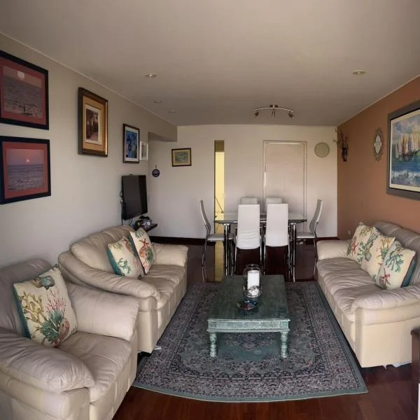Lindo depa en alquiler con Vista al Mar en el malecn de Chorriilos este depa en piso totalmente amoblado y equipado tiene una maravillosa vista al mar cuartos baos completos sala de estar con sof cama sala cocina comedor y lavanderia adems de un lindo balcn con toda la vista Tiene una cochera en stano El edificio cuenta con piscina solarium y zona de parrilla Seguridad horasSe alquila amoblado Las condiciones son meses de alquiler y uno de garanta contrato mnimo aoSe admiten mascotas previa evaluacinTe ayudamos a encontrar tu inmueble ideal un comprador para tu propiedad tu primer departamento el hogar para tu familia o el espacio para desarrollar tu emprendimiento